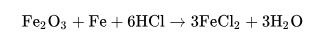 鹽酸一個最重要的用途是酸洗鋼材。在后續(xù)處理鐵或鋼材(擠壓、軋制、鍍鋅等)之前,可用鹽酸反應(yīng)掉表面的銹或鐵氧化物。通常使用濃度為18%的鹽酸溶液作為酸洗劑來清洗碳鋼: