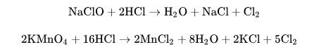 濃鹽酸(發(fā)煙鹽酸)會揮發(fā)出酸霧。鹽酸本身和酸霧都會腐蝕人體組織,可能會不可逆地損傷呼吸器官、眼部、皮膚和胃腸等。在將鹽酸與氧化劑(例如漂白劑次氯酸鈉或高錳酸鉀等)混合時,會產生有毒氣體氯氣。