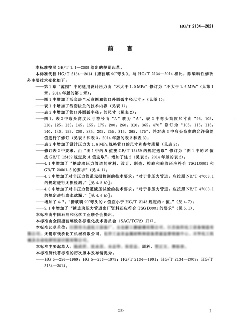 中華人民共和國化工行業(yè)標(biāo)準(zhǔn)HG/T 2134-2021搪玻璃90°彎頭 點擊下載搪玻璃90°彎頭行業(yè)標(biāo)準(zhǔn)