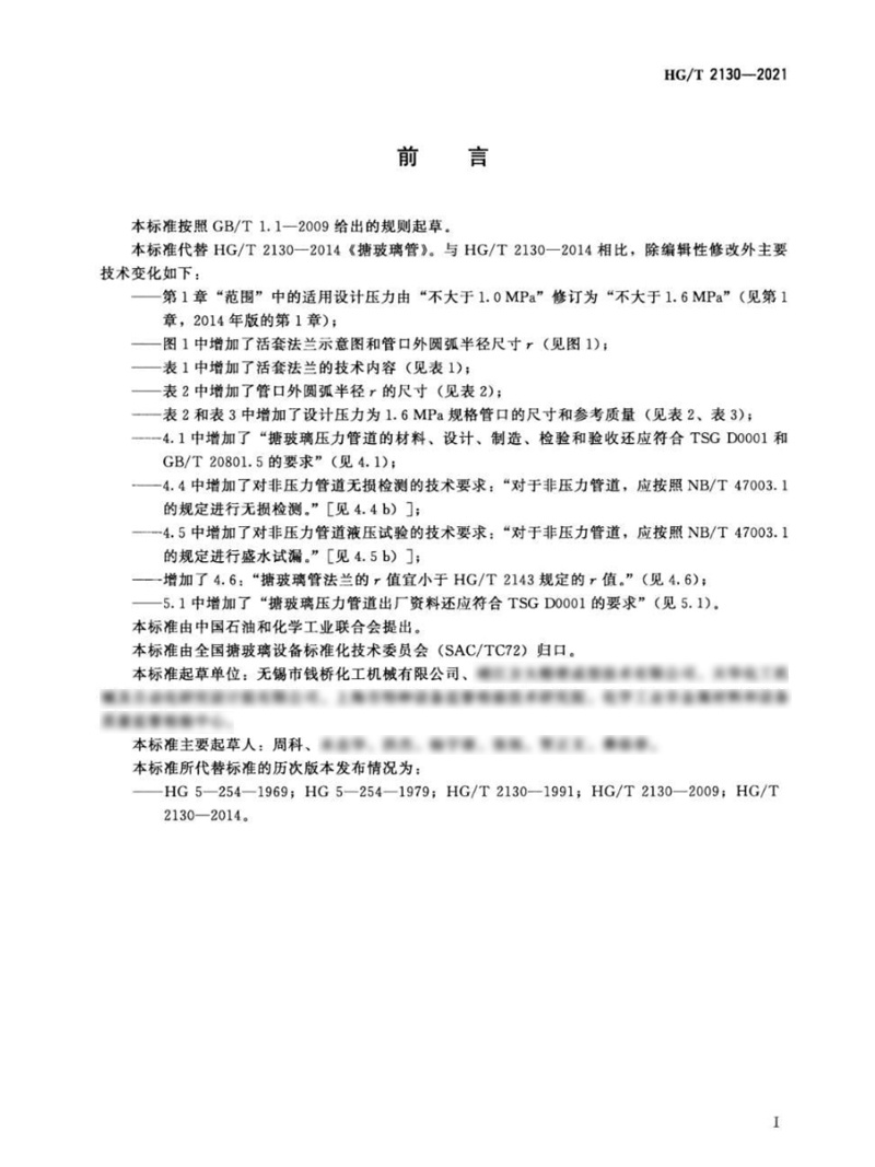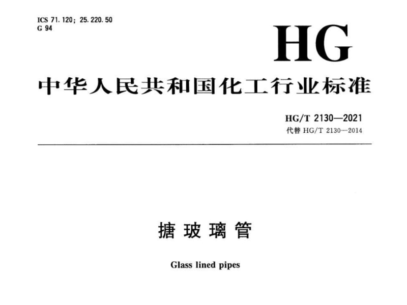 中華人民共和國化工行業(yè)標準HG/T 2130-2021搪玻璃管 點擊下載搪玻璃管行業(yè)標準