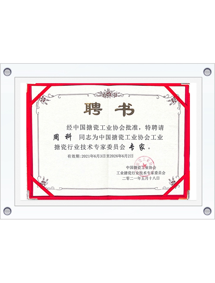 中國搪瓷工業(yè)協(xié)會(huì)工業(yè)搪瓷專家聘書