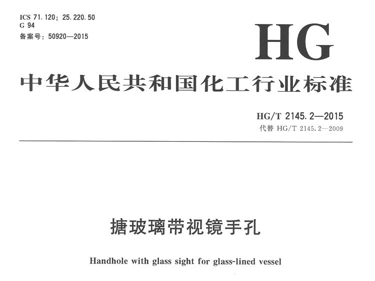 HG/T 2145.2-2015搪玻璃帶視鏡手孔化工行業(yè)標準簡介和下載