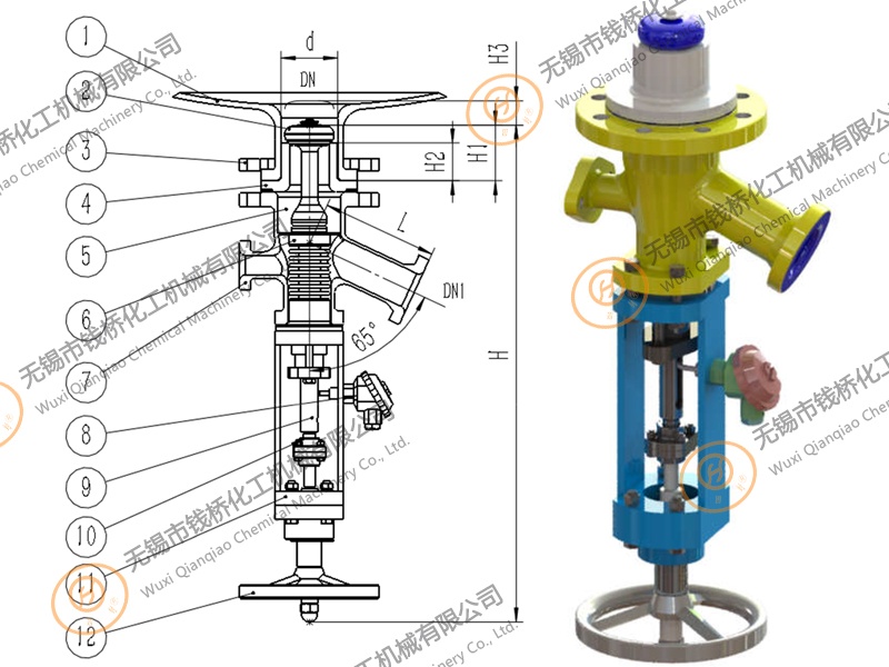 搪玻璃上展式手動放料閥 *內(nèi)置測溫手動放料閥。閥門采用無間隙結(jié)構(gòu), 波紋填料密封和閥芯緊密裝配,減少泄露的可能。閥芯內(nèi)可以安裝溫度傳感器,檢測物料溫度。該閥門通過手輪手動操作開關(guān)閥門。