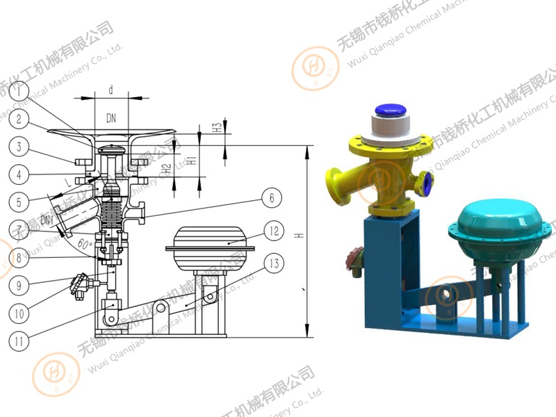 搪玻璃上展式自動(dòng)放料閥(側(cè)向執(zhí)行機(jī)構(gòu)) *內(nèi)置測溫氣動(dòng)放料閥